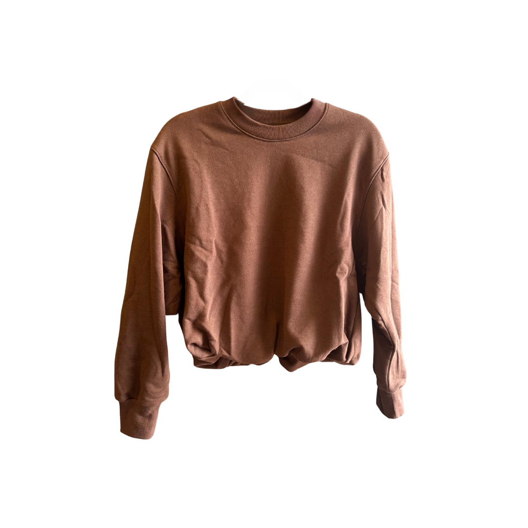 This Bubble Hem Sweatshirt in Chocolate combines cozy cotton fabric with a stylish bubble hem design, offering both comfort and a modern silhouette.This sweatshirt balances softness and structure for everyday wear.