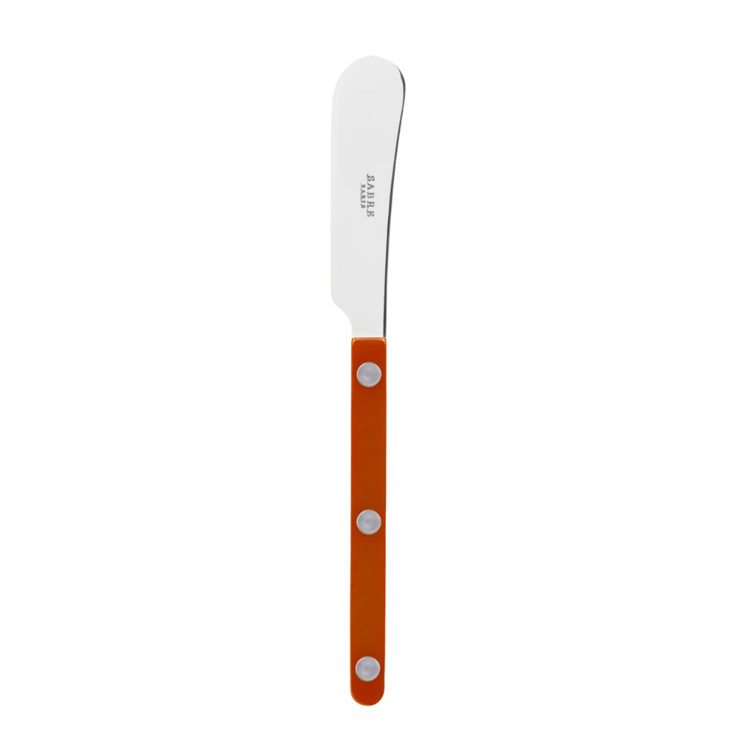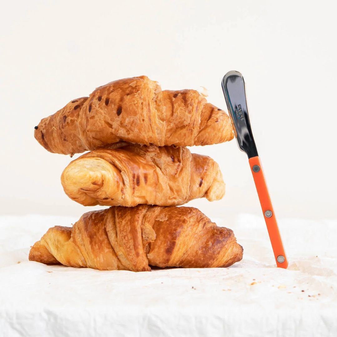 With the Bistrot collection, we were inspired by some of our favorite places: restaurants, terraces and cafés. When designing this cutlery, we wanted to faithfully capture the atmosphere while adding a modern touch: the styling is simple, the rivets are visible, while the colors and materials stand out nicely. From red to blue, not forgetting the superb materials with horn or tortoise effects. Available with gloss or vintage finishes, we’re sure you’ll enjoy this collection, which is designed to be both traditional and contemporary at the same time. With its non-slicing blade, the Sabre butter spreader is used to spread soft butter, tapenades, taramas or any other foodstuffs to be spread on bread or toast.