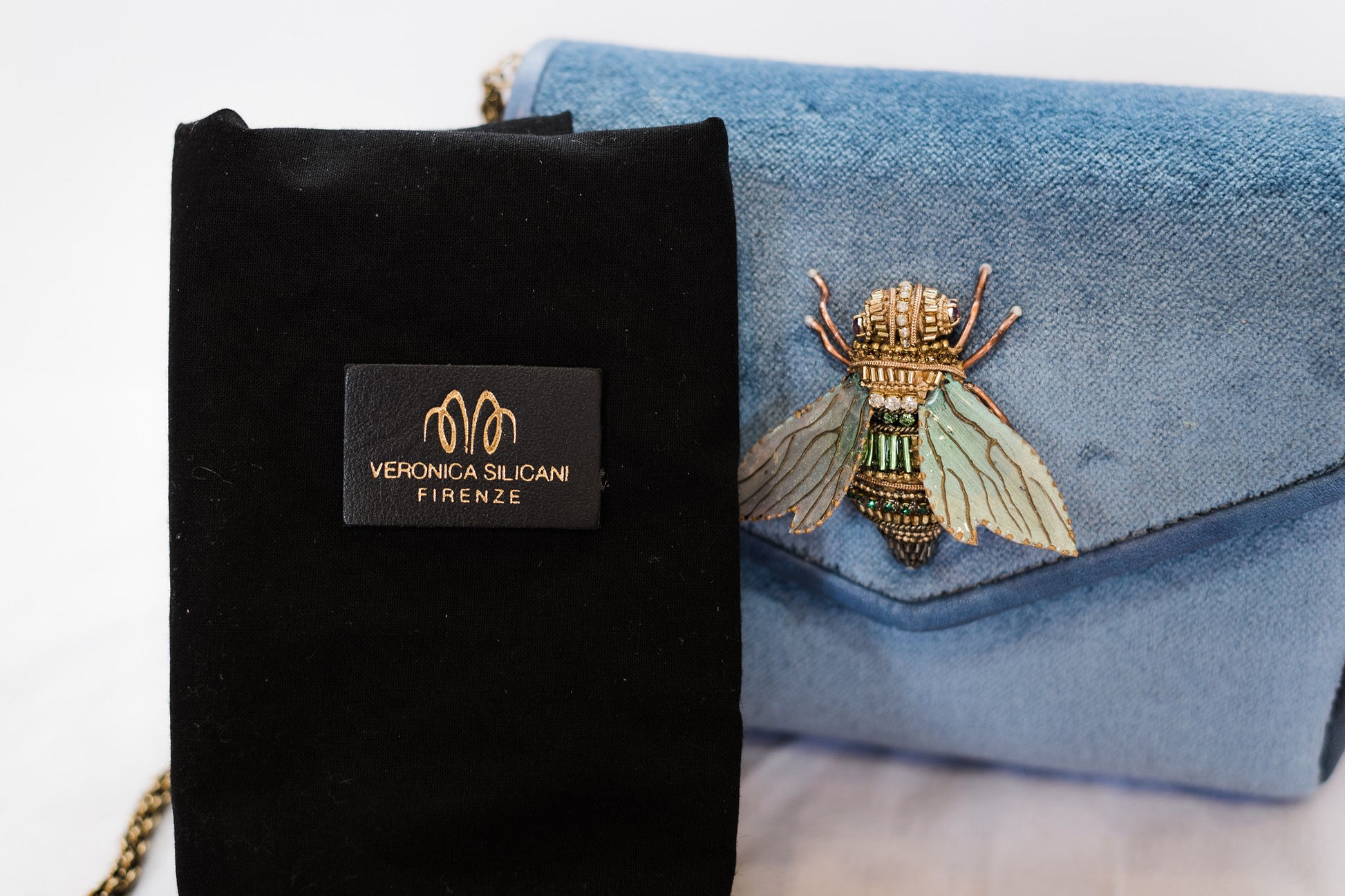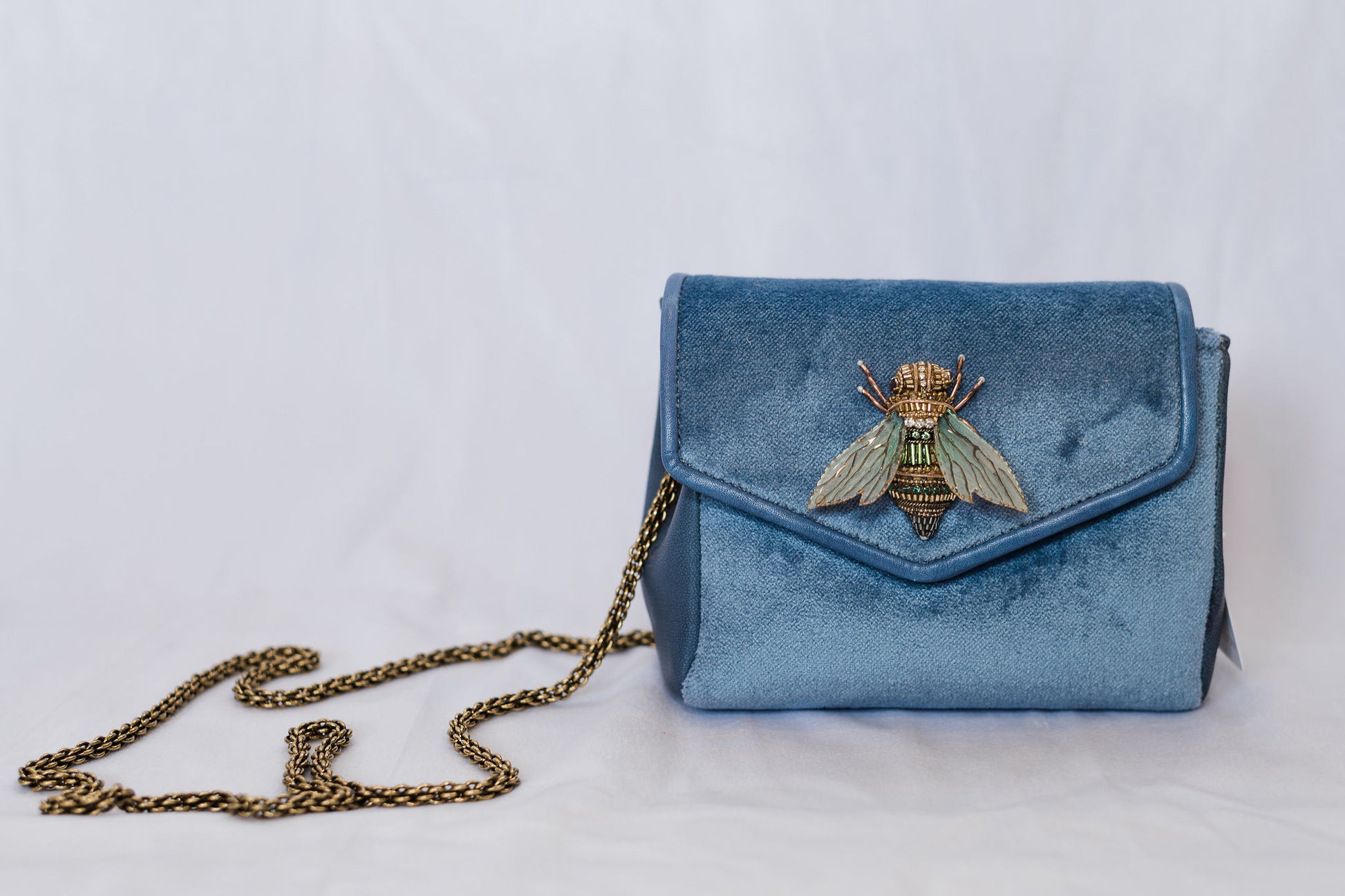 Each bag is unique and completely handmade. Elegant small handbag, in the “Bags and the City” limited edition. Made of solid color velvet fabric and high-quality leather. Leather interior lining with pocket and removable leather shoulder strap.