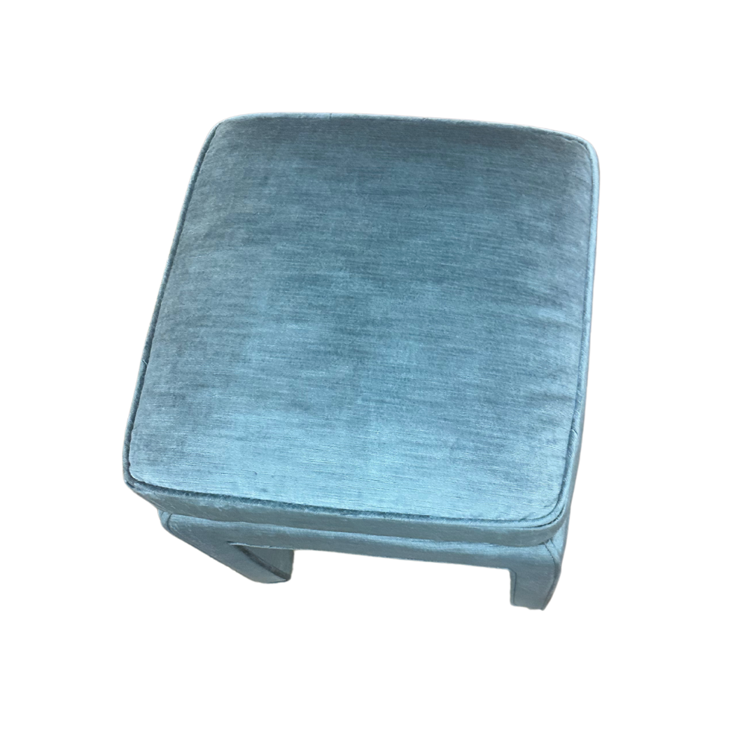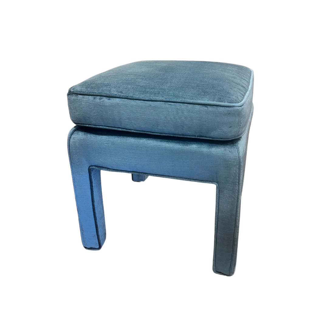 This custom antique ottoman features luxurious blue velvet upholstery that combines timeless elegance with modern comfort. Expertly crafted, its plush velvet surface offers a rich texture and vibrant color, making it a sophisticated accent piece for any living space. Ideal for seating or as a stylish footrest, this ottoman enhances your décor with both functionality and classic charm.