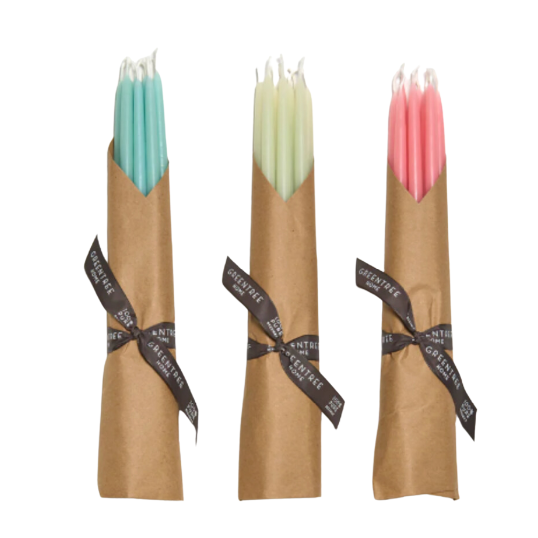 Ideal for celebrations big and small! Each bundle includes 10 tapers – just the right number of candles to cluster together on top of a celebration cake, or to light up your home as the nights get longer and days shorter.