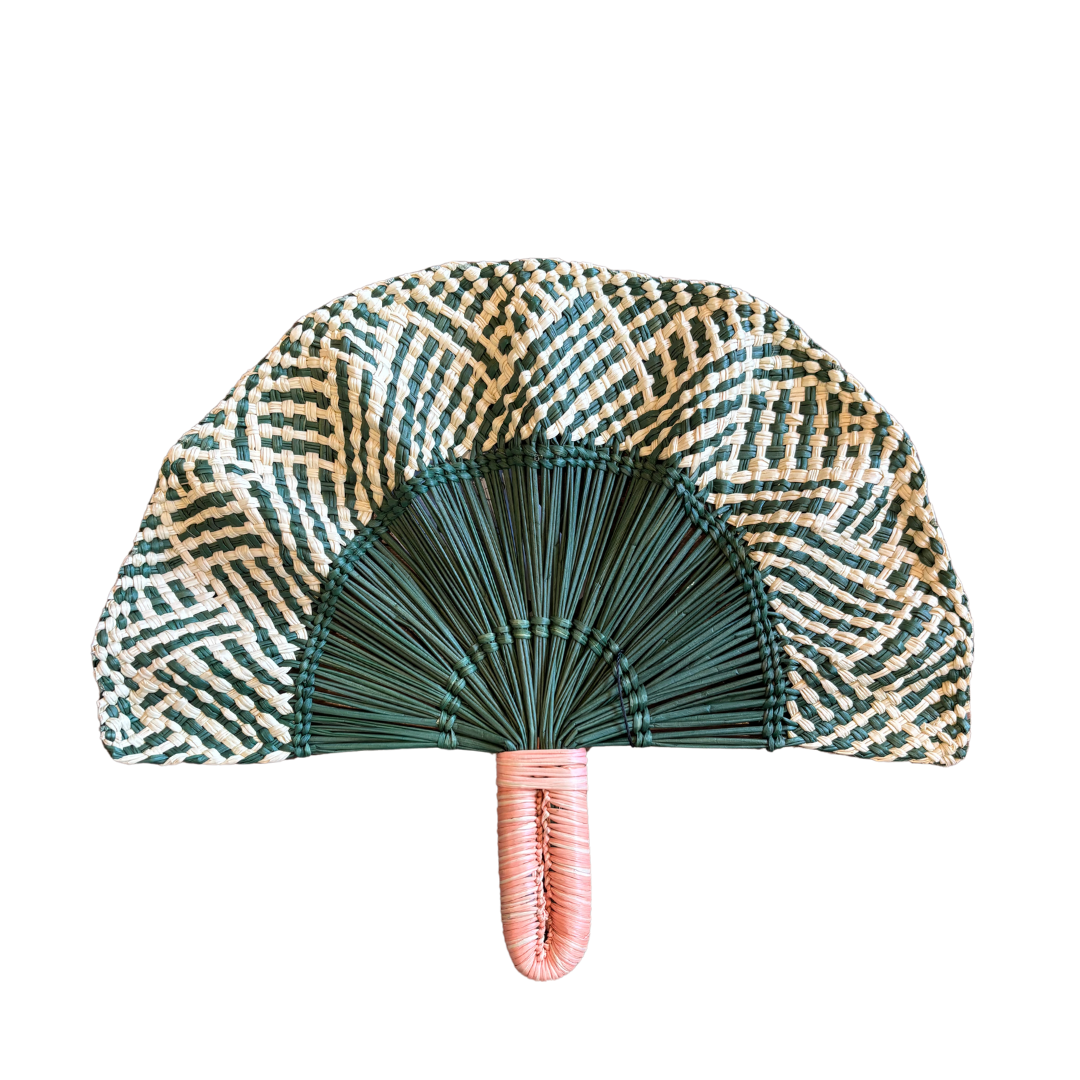These stunning hand fans are made of Toquilla palm by women artisans from Sandoná, a small town tucked in the mountains of Southern Colombia. Using a traditional technique, the process begins by obtaining the threads from the leaves of the Toquilla, which are then dyed and interwoven to create beautiful and intricate pieces that are the ultimate expression of the region’s culture and identity. For decades, artisan communities in the region have preserved this art of weaving Toquilla palm, and it currently constitutes their main source of income.