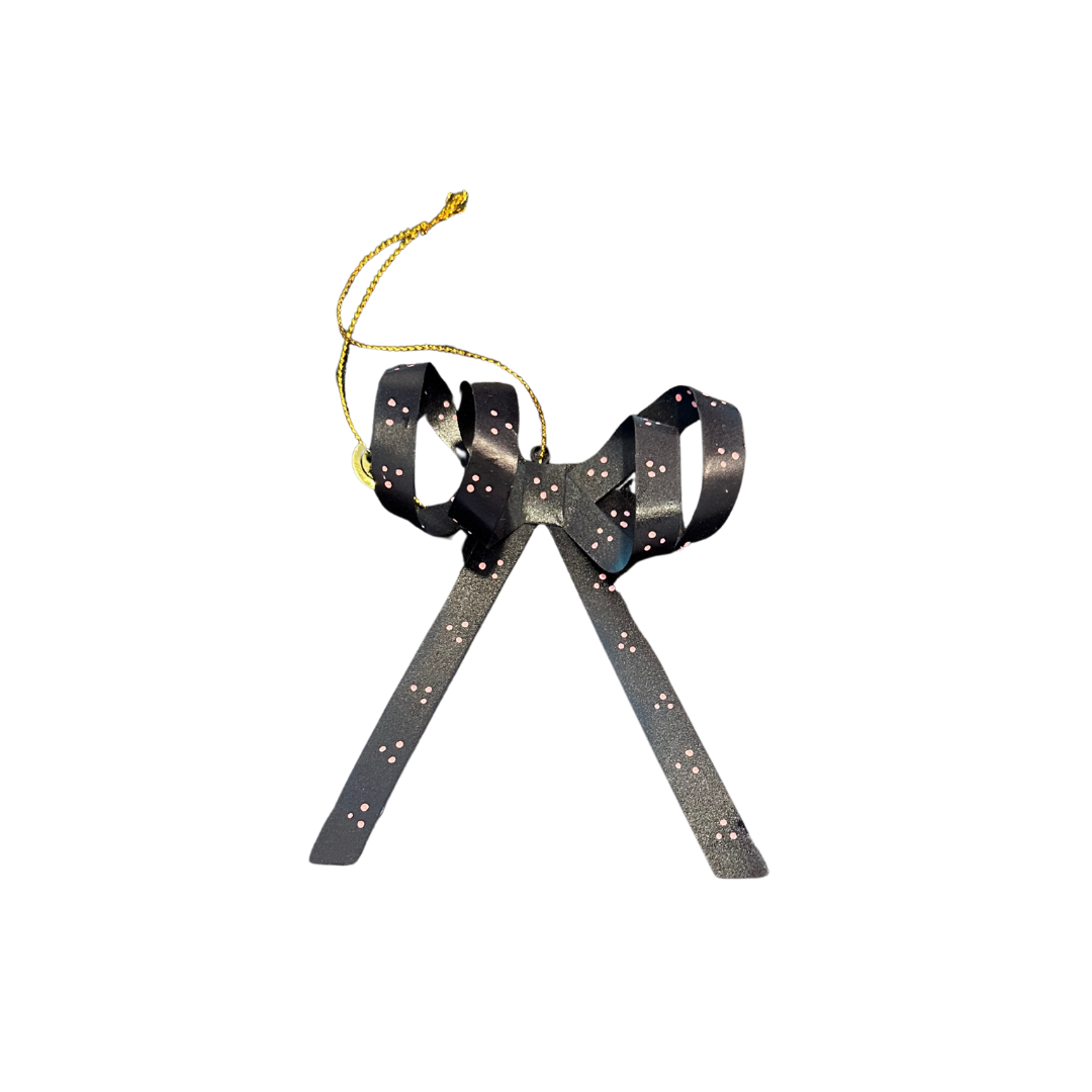 Hand Painted Bow Ornament {Black + Pink Dot}