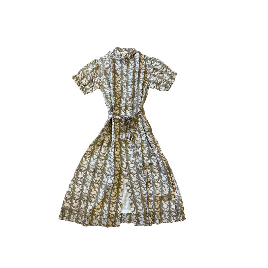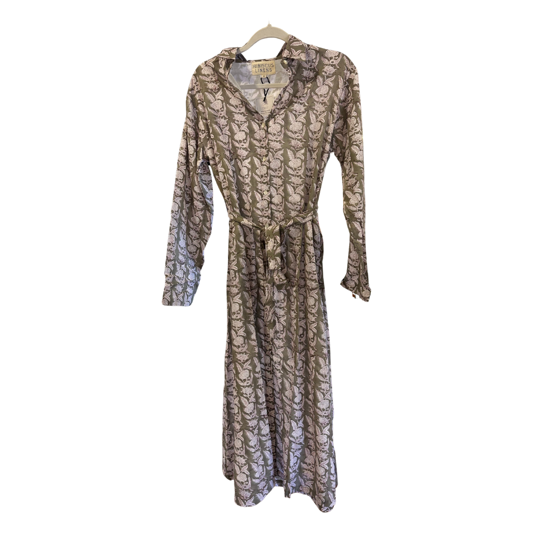 This expertly crafted green dress features a vibrant hibiscus floral print, showcasing meticulous handmade detailing. Machine wash cold - hang to dry.