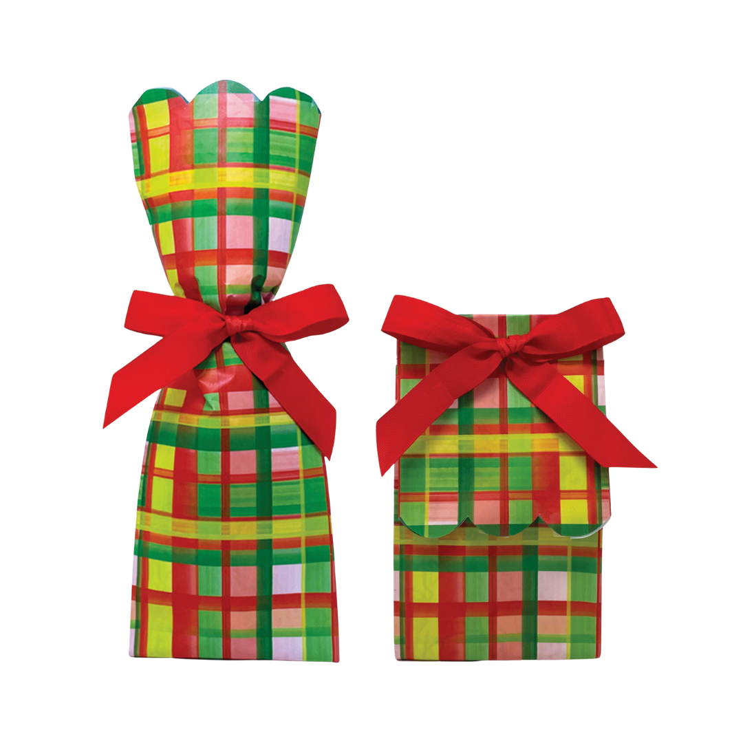 Elevate any gift (last-minute or planned) with our Holiday Plaid Wine + Gift Bag Kits. Each set includes six paper gift bags and six coordinating pre-cut grosgrain ribbons for easy, elegant wrapping. Designed to fit wine bottles, candles and other small presents, the bags can be tied in multiple ways for a polished presentation. Whether sold as a packaged set or individually, they add an elevated, festive touch that turns simple gifts into thoughtful moments at Christmas.