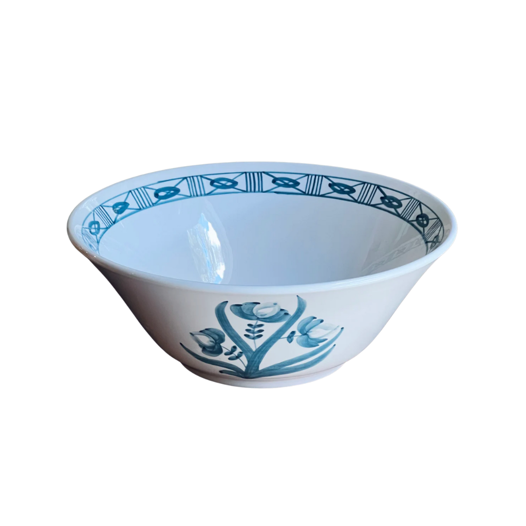 Our delicately painted serving bowls were created to add a bit of elegance to your table. Each piece is uniquely painted by hand with the artist signature on the bottom of the bowl. Hand painted in Portugal!