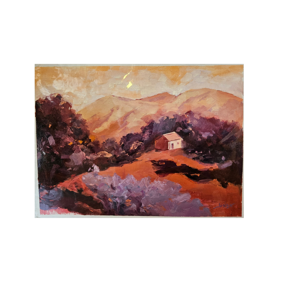 9" x 12" (horizontal plein air orange and purple), oil on paper by Janea Spillers