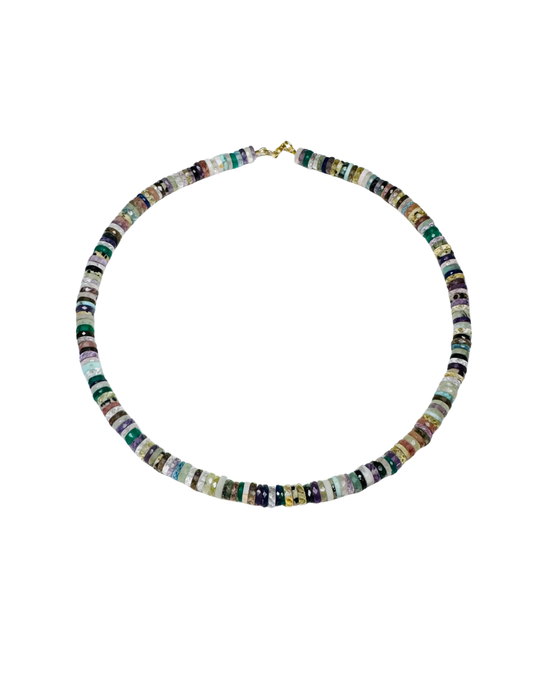 8 mm faceted heshi cut quartz and chalcedony stones in pastel colors, 17 inches in length