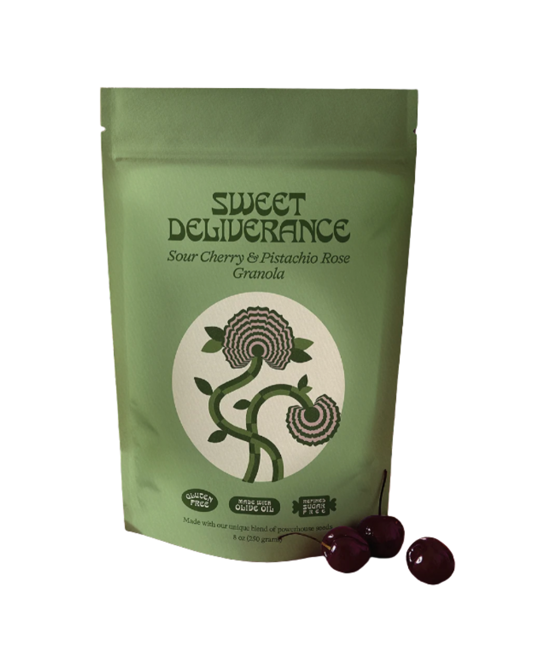 An elegant take on the classic granola. This subtly-sweet blend marries the flavors of pistachios, tart cherries, coconut, and antioxidant-rich cardamom with nourishing sesame, chia and golden flax seeds and fiber-packed oats. The addition of real rose petals takes this one to the next level in all the right ways.