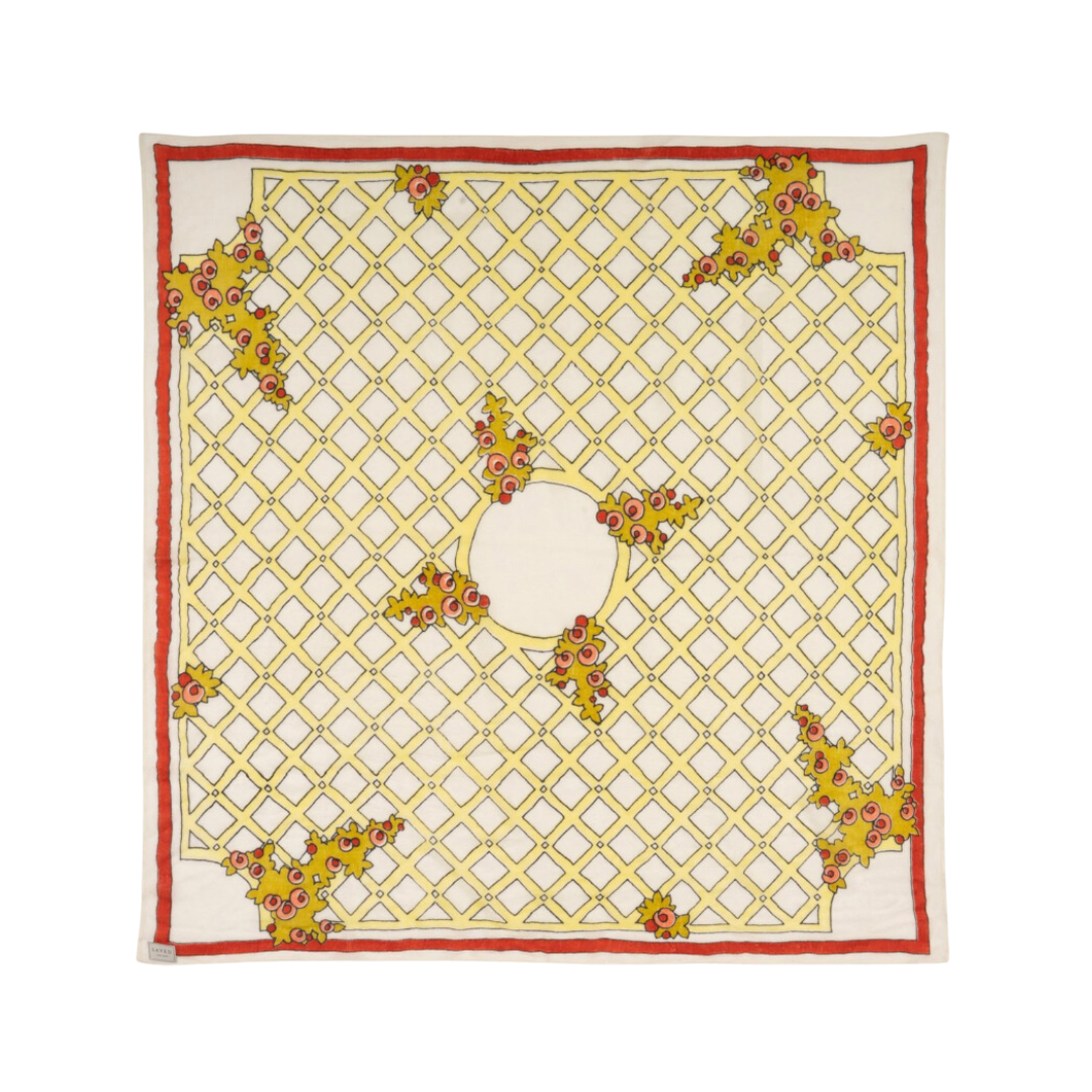 100% Hand-combed Mongolian Cashmere, Hand-woven, Printed and finished with a handkerchief trim