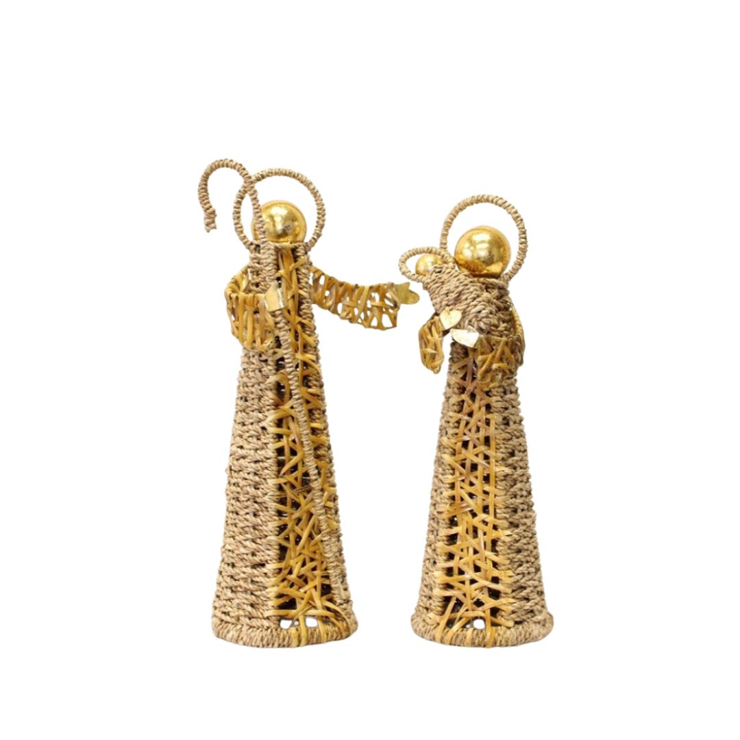 This 24" woven Holy Family set features Mary, Joseph, and baby Jesus — a beautifully crafted piece that brings a natural, textured touch to your holiday décor.